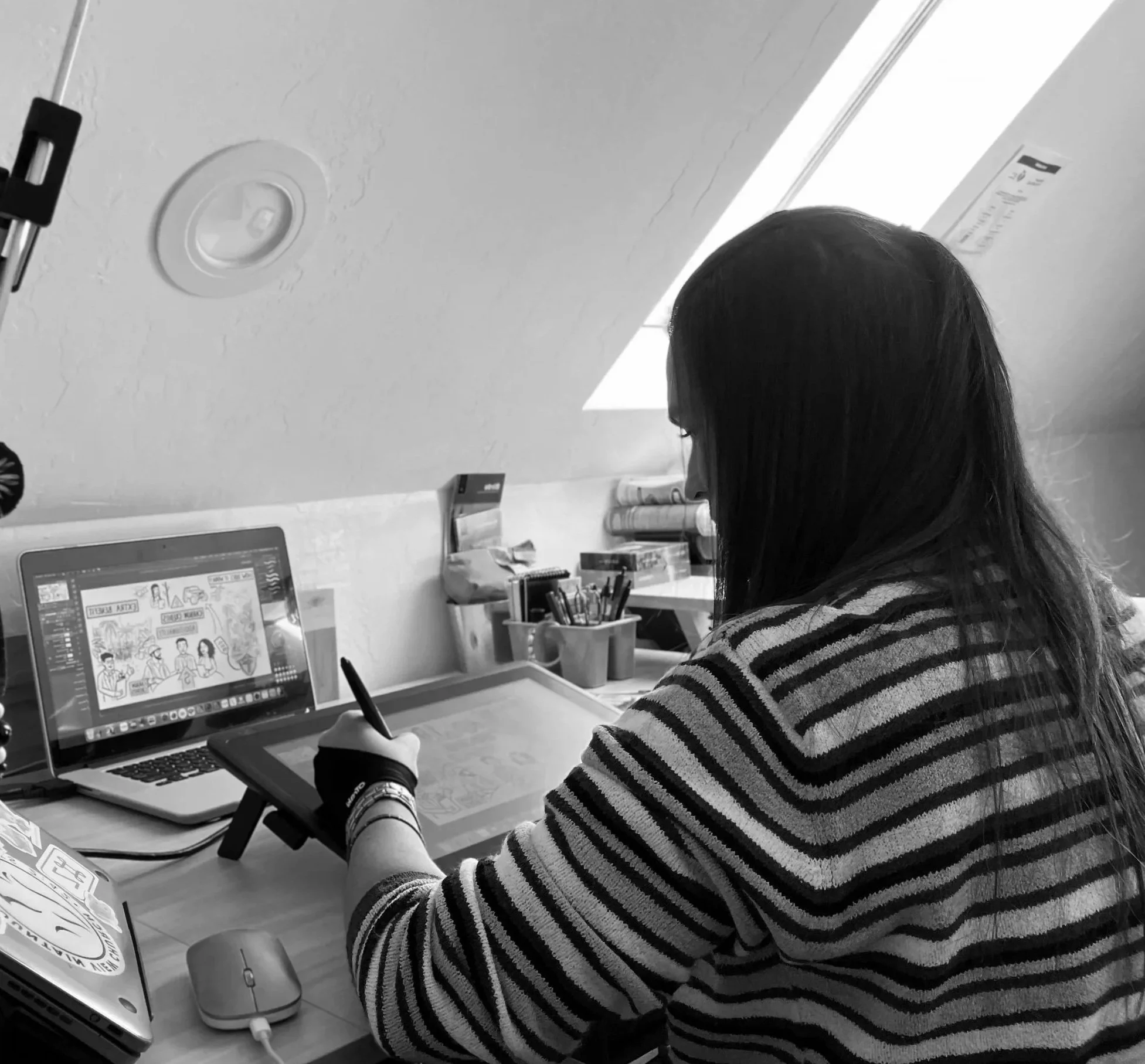 As it turns out, images are a language too… and a powerful one. I found my way into the animation and illustration industry almost by accident, when the COO of a local animation company saw me sketch in public and promptly offered me a job. What humbly began as a lifelong habit of drawing evolved into a full creative career spanning illustration, design, and animation. I’m still just as obsessed with learning, refining, and filling sketchbooks as ever.